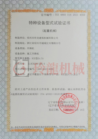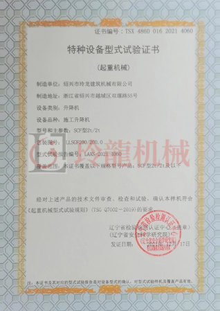 施工升降機(jī)-特種設(shè)備型式試驗(yàn)合格證