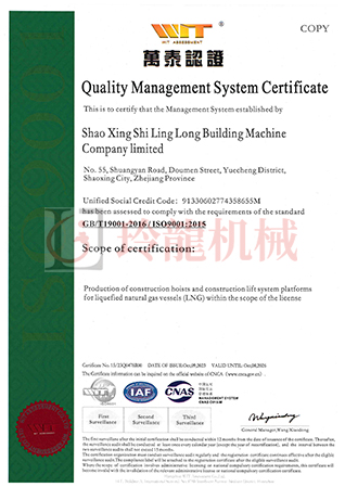 質(zhì)量體系證書(英文)